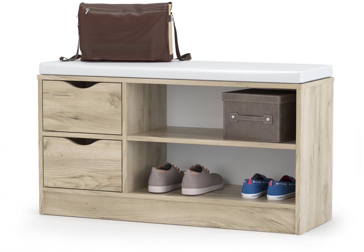 Тумба для обуви Лайт 10.82, цвет дуб крафт серый/белая искусственная кожа купить в Астрахани недорого с доставкой, цены на сайте