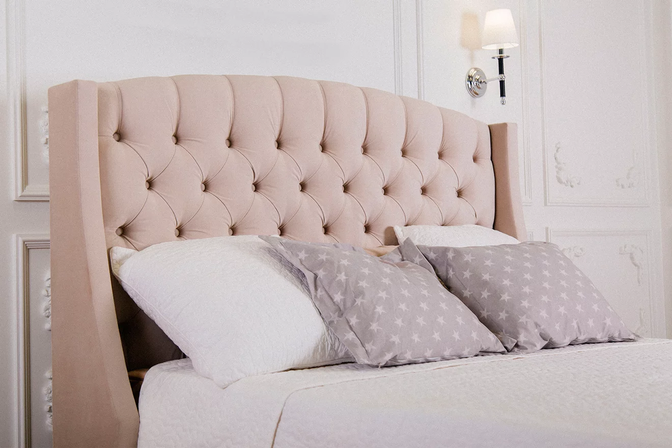 Высокое, слегка изогнутое изголовье оснащено небольшими бортиками, создающими ощущение отгороженности и интимности, которое так необходимо в спальне. Благородная классическая стежка капитоне добавляет величественности модели, делая ее по-настоящему роскошной.