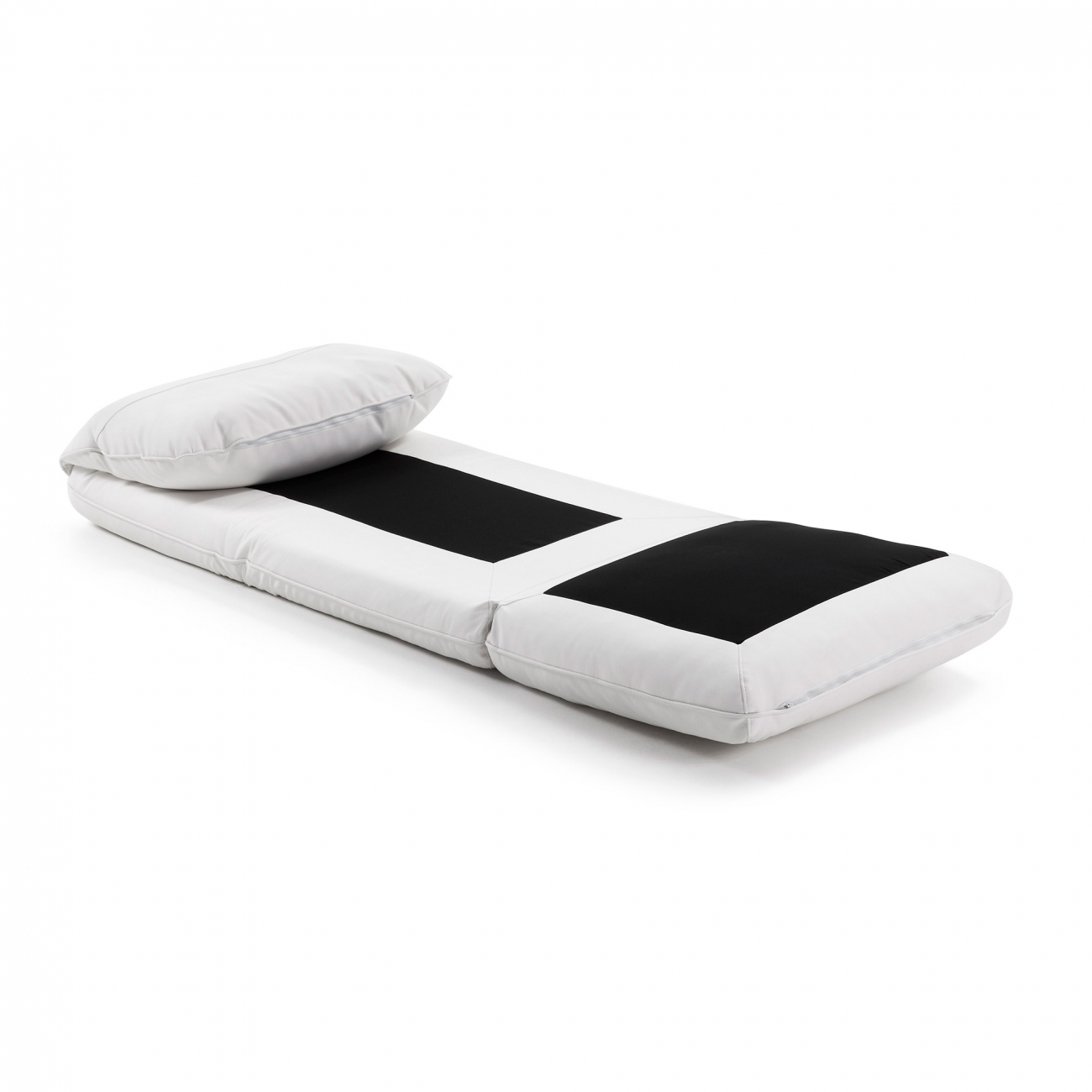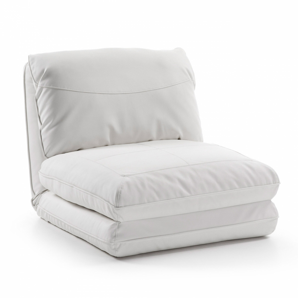 Кресло для клик-кровати щелкает в открытом положении. Мягкая обивка из белой синтетической кожи. Заполнен полиуретановой пеной.