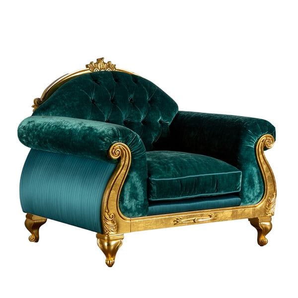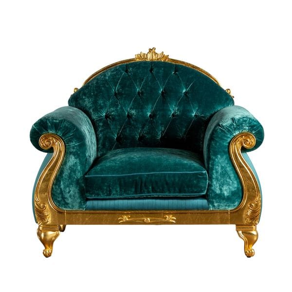Кресло Stradivari – изящное классическое произведение мебельного искусства. Выступающие очертания изголовья коронуют экспрессивные завитки аканта. Мягкая спинка мебели декорирована пиковкой. Роскошная, шелковая или атласная плиссировка, украшающая основание и спинку, делает модель неповторимой. Мебель, с элегантным силуэтом, на резных декоративных ножках-кабриоль выглядит легко и изящно.Каркас:массив дерева и многослойная влагостойкая фанера высшего сорта, покрытая пенополиуретаном и синтепоном. Эластичное основание сидения и спинки из резинотканевых ремней.Наполнение спинки:высокоэластичный, латексоподобный ППУ, покрытый 100 полиэстеровым слоем.Наполнение локотника:высокоэластичный, латексоподобный ППУ различной плотности, покрытый 100 полиэстеровым слоем.Наполнение подушек сидения:высокоэластичный, латексоподобный ППУ высокоэластичный Memory foam.Съемность чехлов:съемные чехлы с подушек сиденья. Кресло STRADIVARI бирюзовое.