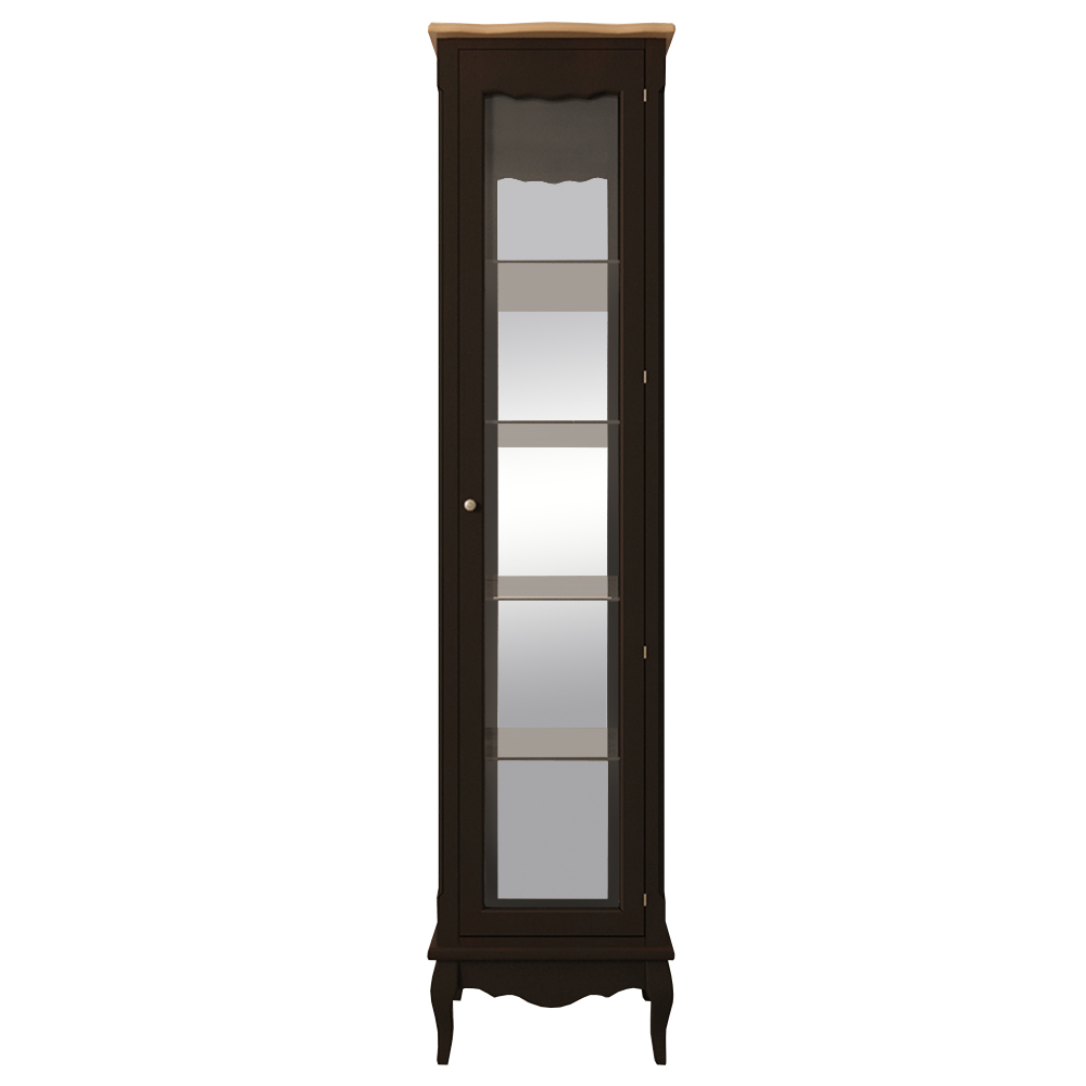 Цвет: Черный,Глубина, см: 37,Высота, см: 190,Ширина, см: 45,Материал: Массив березы,Массив ясеня,Вес: 36 кг,Стиль: Прованс,Цвет столешницы: Орех,Дизайн: Франция,Назначение: Для посуды,Конструкция: Витрина,Количество дверей: 1,Ножки: с гнутыми ножками,Опора: На ножках,