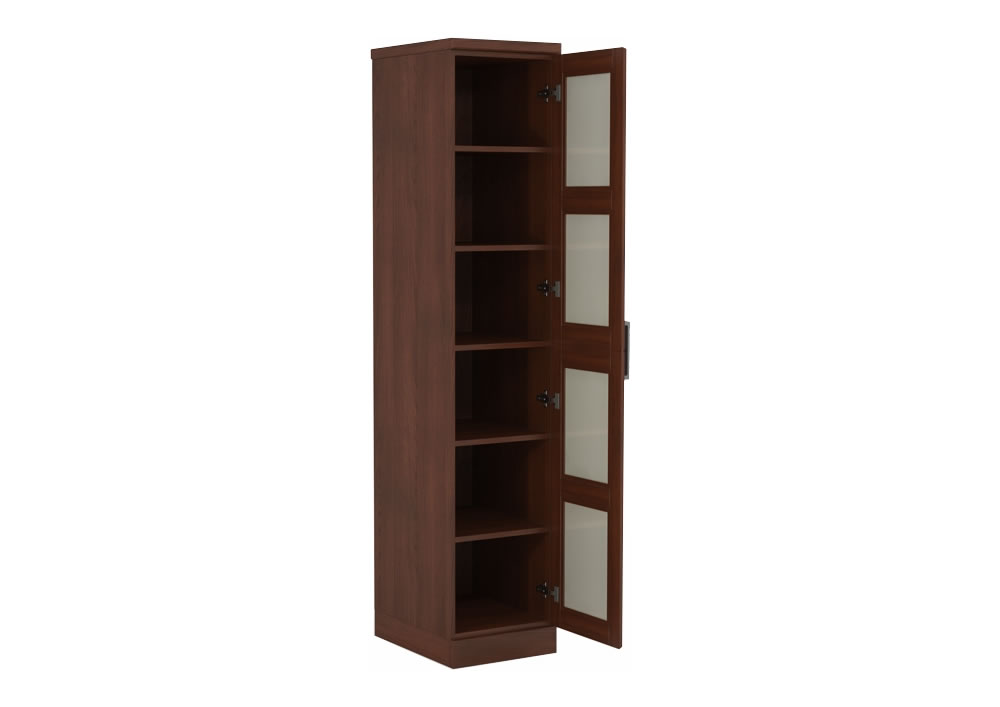Смелый и функциональный дизайн, особая конструкция дверцы шкафа — рецепт популярности шкафа Парма. Корпус шкафа может быть изготовлен как из массива бука и ясеня, так и из массива мягколиственных пород — это способствует крайне адекватной цене на изделия. Одностворчатый шкаф идеально подходит для составления мебельных композиций в качестве модульного элемента. Фасады шкафа имеют встроенные стекла матового белого цвета. По желанию шкаф может быть оснащен любым количеством полок. Стандартно шкаф имеет две стандартных комплектовки: с антресольной секцией в верхней или нижней части шкафа.