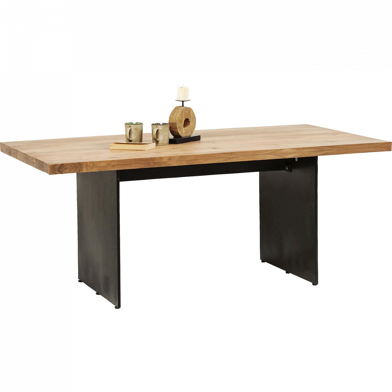 Благородный стол с индивидуально вырезанной столешницей из натуральной акации и основанием из чёрной лакированной стали в лучших традициях индустриального стиля.