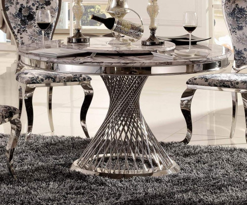 Стальное основание, столешница из искусственного мрамора темно-серого цвета с белыми прожилками