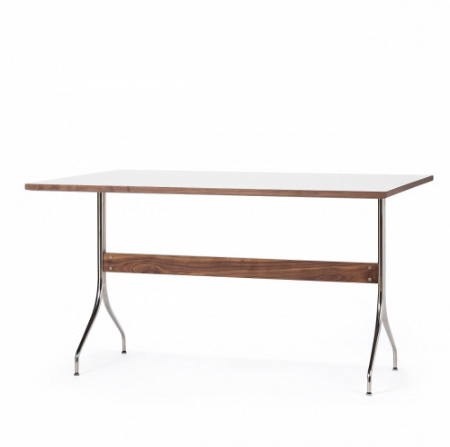 Натуральное дерево, прочная и стойкая к ударам меламиновая столешница, надежная стальная опора — обеденный стол Wellington прямоугольный обладает всеми необходимыми качествами, чтобы за ним могла удобно разместиться семья или небольшая компания друзей.