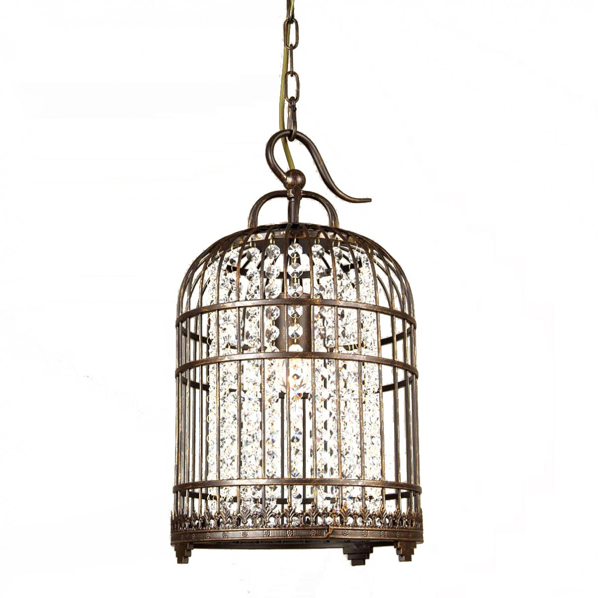 Люстра-клетка Nicolette. Основание окрашенное в кофейный цвет железо, хрусталь, предназначена для использования со светодиодными лампами, лампы не включены в комплект